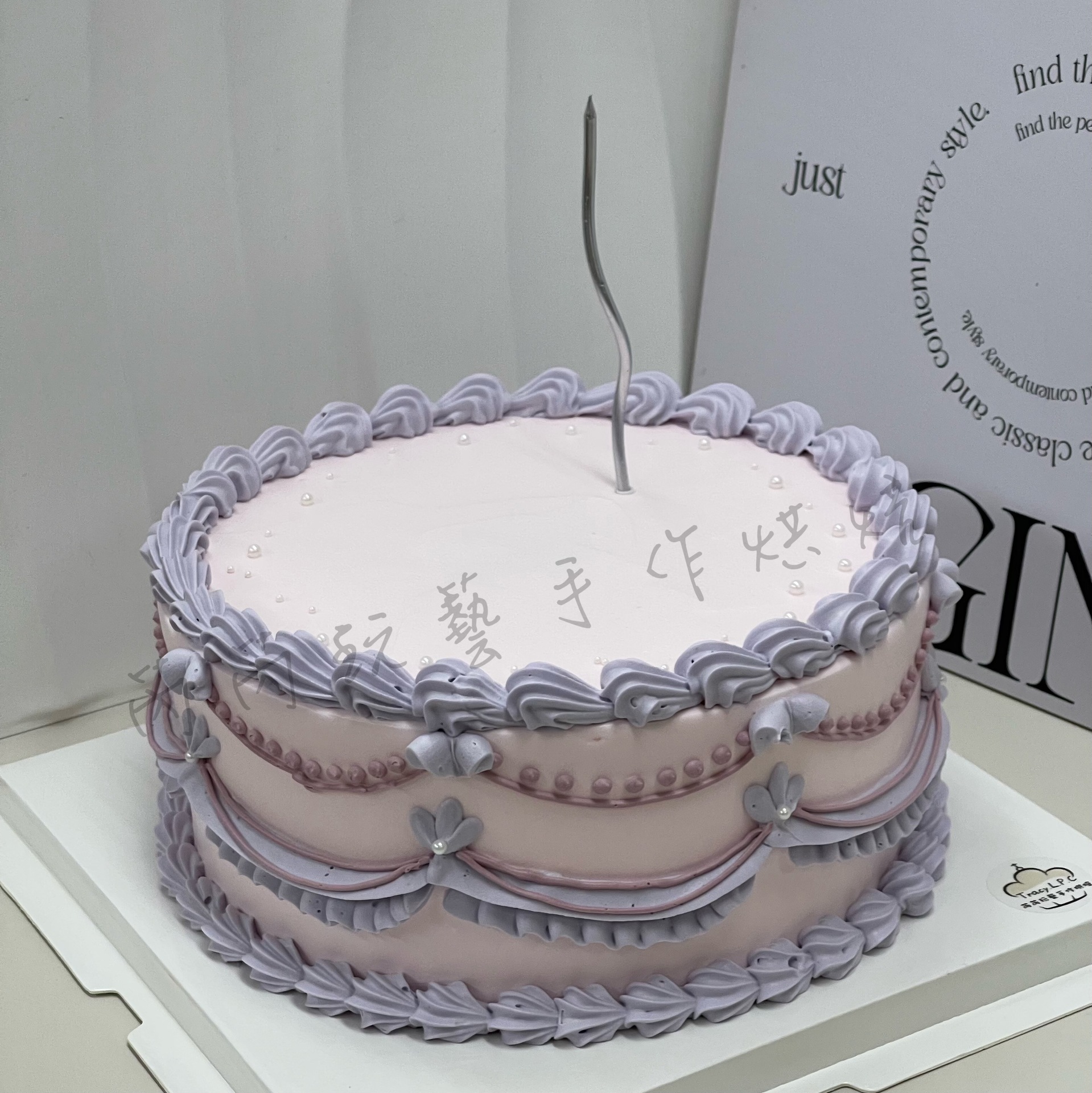 靛紫緞帶-復古奶油擠花